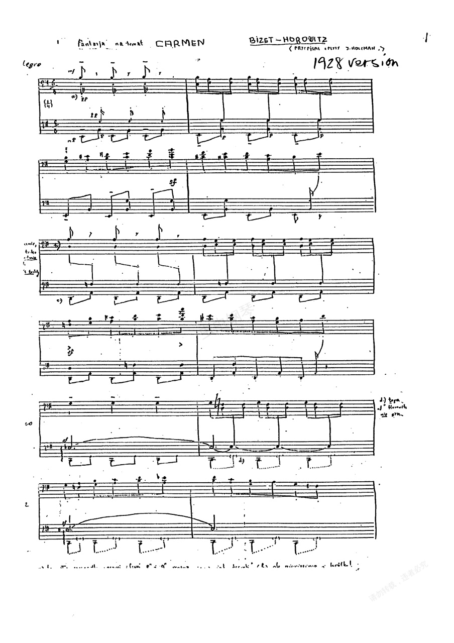 钢琴谱:卡门主题变奏曲 Carmen Variations - 根据比才歌剧《卡门》主题改编(Bizet-Horowitz (1928) Carmen Fantasy (Hollman))