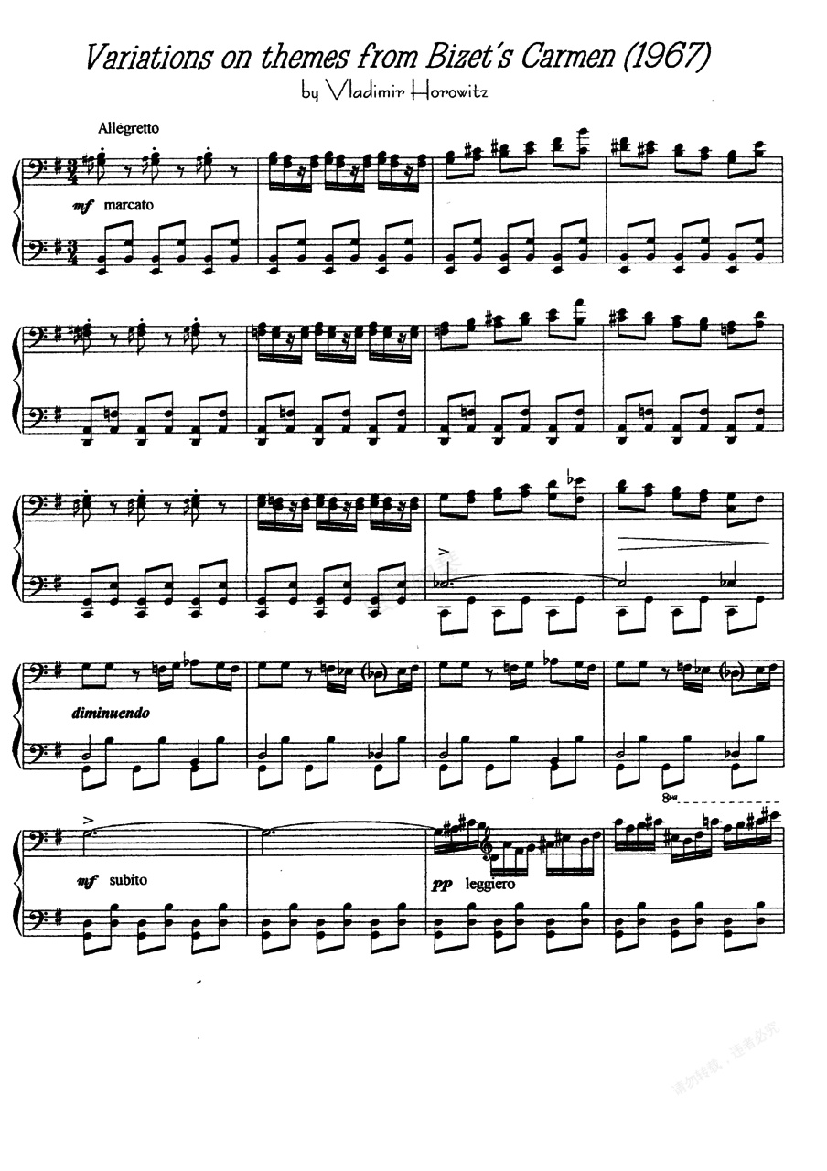 钢琴谱:卡门主题变奏曲 Carmen Variations - 根据比才歌剧《卡门》主题改编(Bizet-Horowitz (1967) Carmen Fantasy (Chiu))