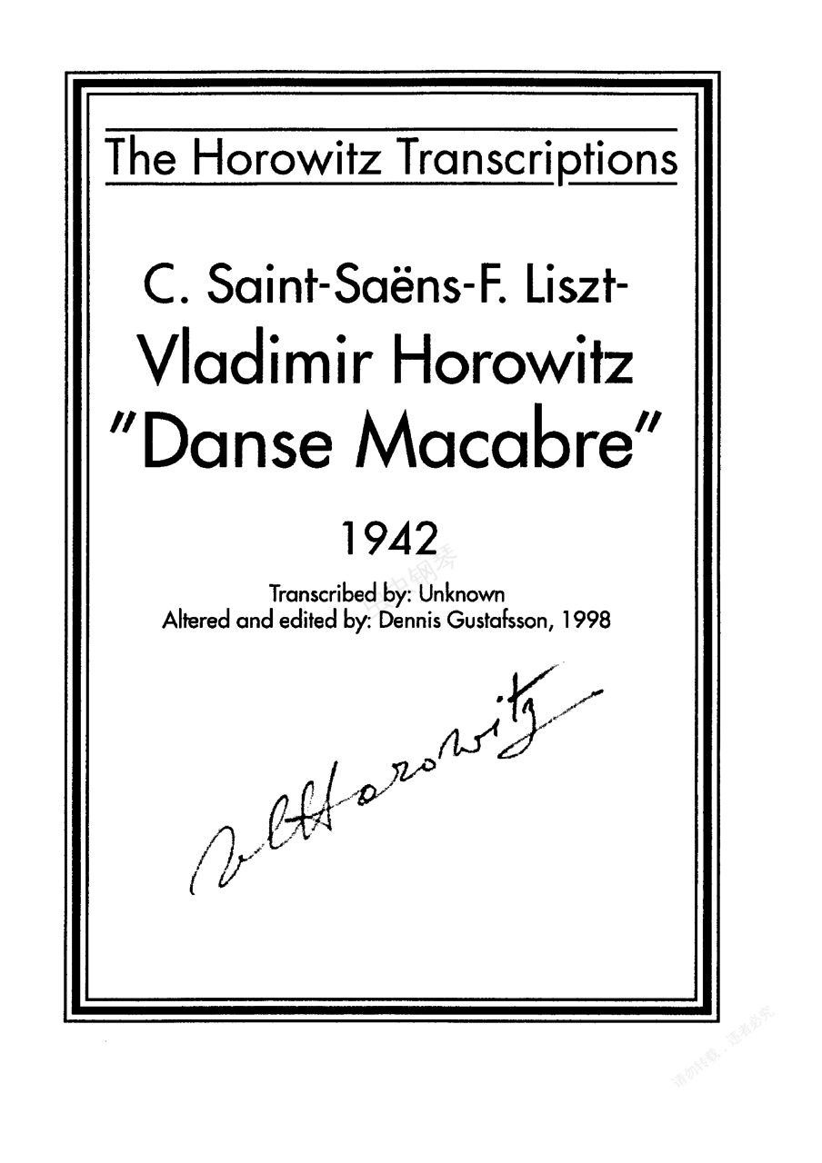 死神之舞 - 根据圣-桑同名交响诗改编《死神之舞》Op.40 是法国作曲家圣-桑最负盛名的一首交响诗,又译“骷髅之舞”、“死之舞”,作于1874年,1875年在巴黎首次上演。乐曲旋律采用了中世纪末日审判的圣咏《愤怒的日子》的曲调,描绘了拉奏小提琴的死神和骷髅们的舞蹈场面。整部作品具有神秘、恐怖的特色。李斯特曾将其改编成一首炫技的钢琴作品。霍洛维茨在李斯特改编版本的基础上加以修订和改编的《死神之舞》Danse Op.40 ,增加了一些快速经过句,并且将结尾完全换掉,相比这下,李斯特的版本略显絮叨了一些。
