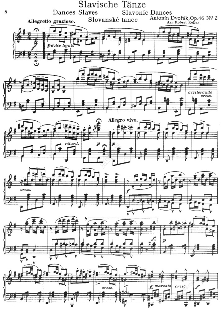 斯拉夫舞曲集 Slavonic Dances独奏版(Dvorak-Keller op46n2 Slavic Dance (solo))