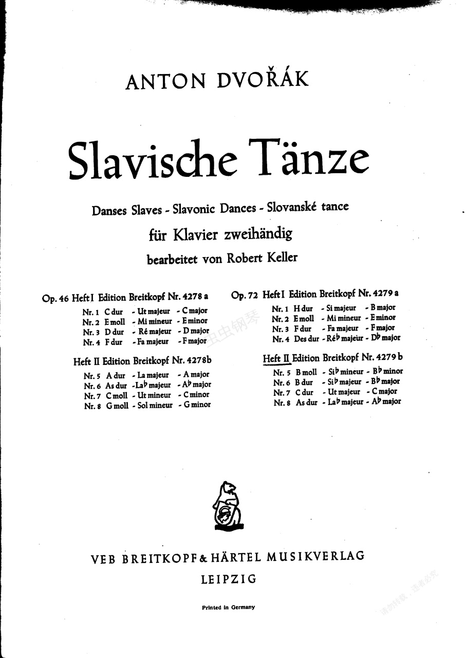 斯拉夫舞曲集 Slavonic Dances独奏版(Dvorak-Keller op72-2 Slavonic Dances Book2)