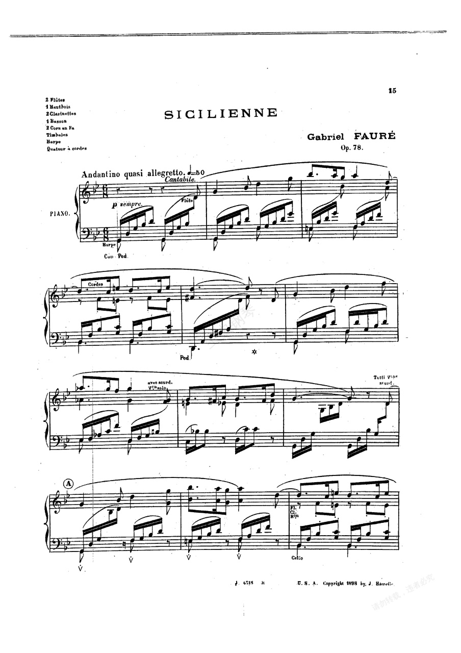西西里舞曲 Sicilienne Op.78 - 钢琴独奏版