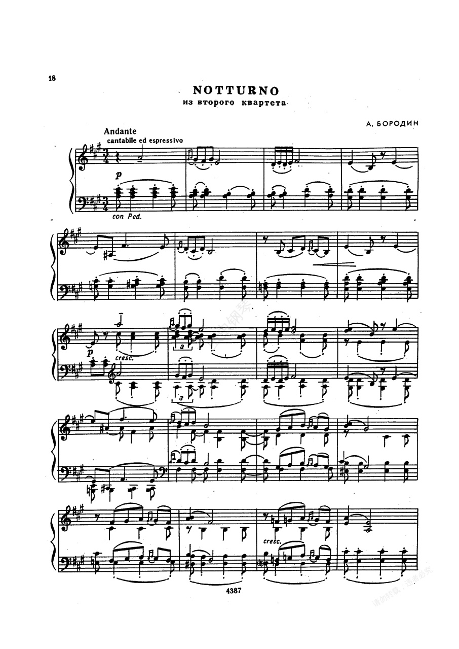 钢琴谱:改编俄罗斯作曲家作品 Russian Transcriptions(Borodin-Feinberg String Quartet 2 Nocturne)