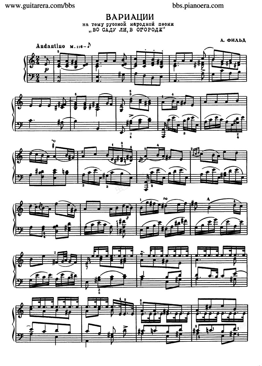 钢琴谱:俄国民歌变奏曲 Variations on a Russian Folksong
