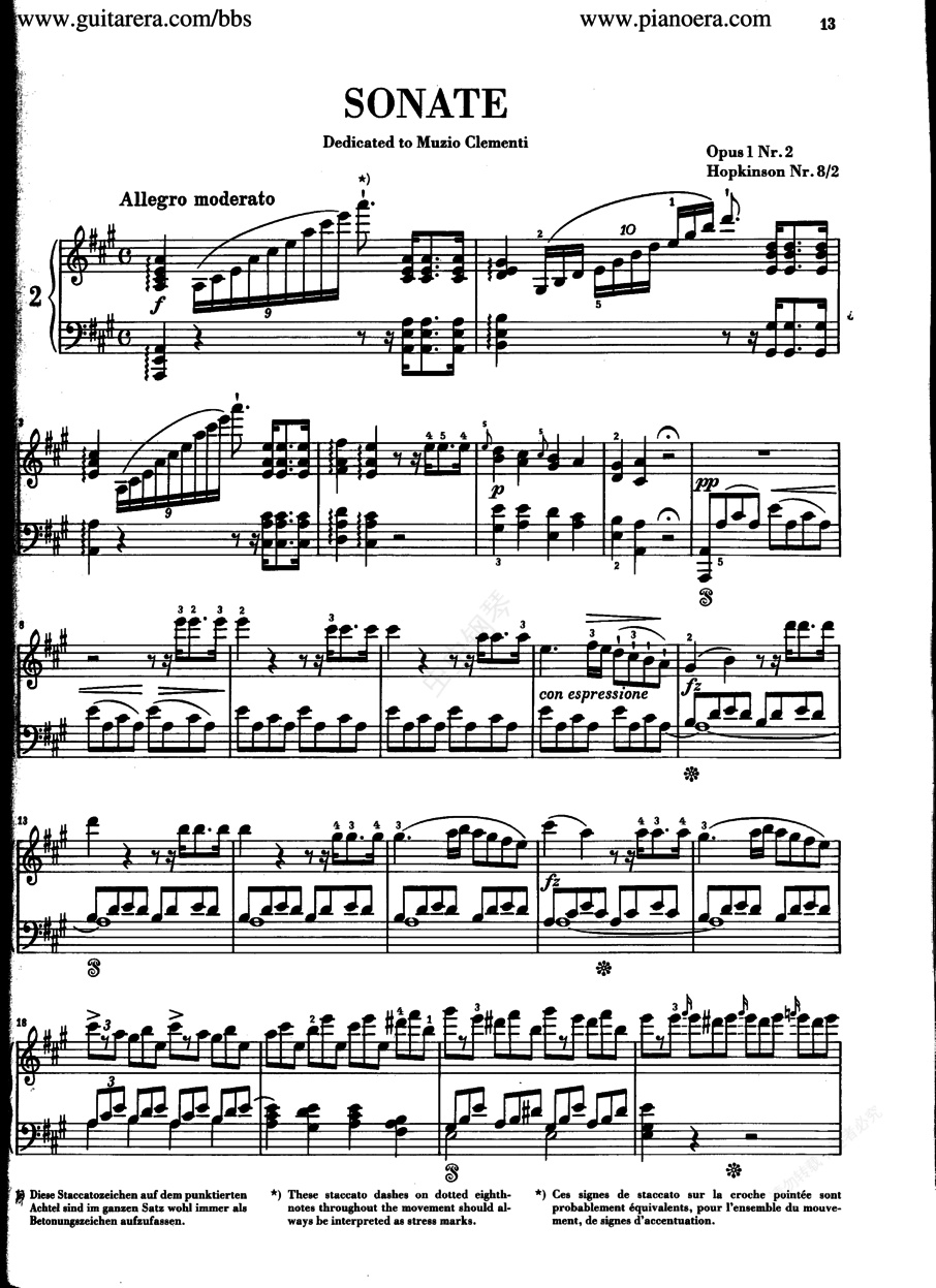 A大调第二钢琴奏鸣曲 Op.1-2