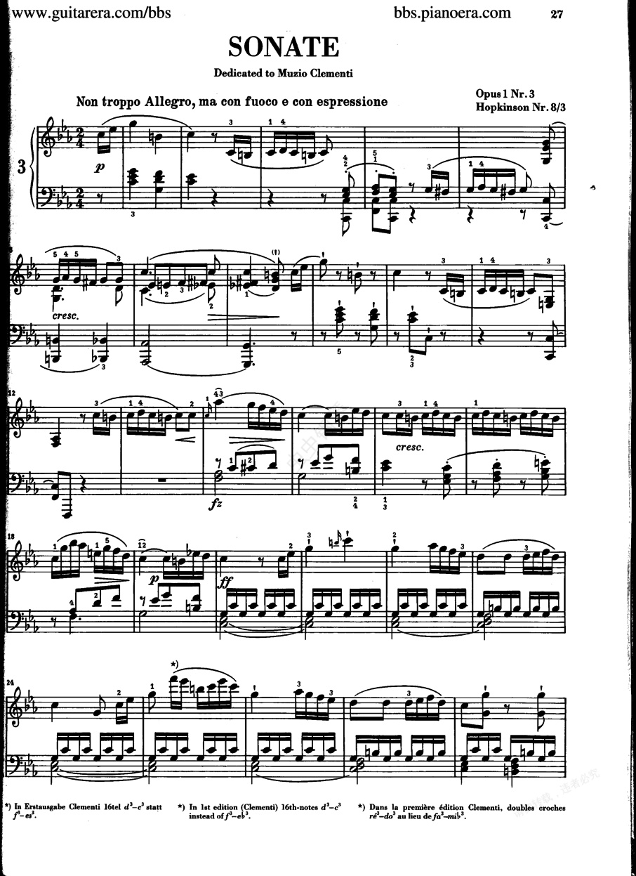 c小调第三钢琴奏鸣曲 Op.1-3