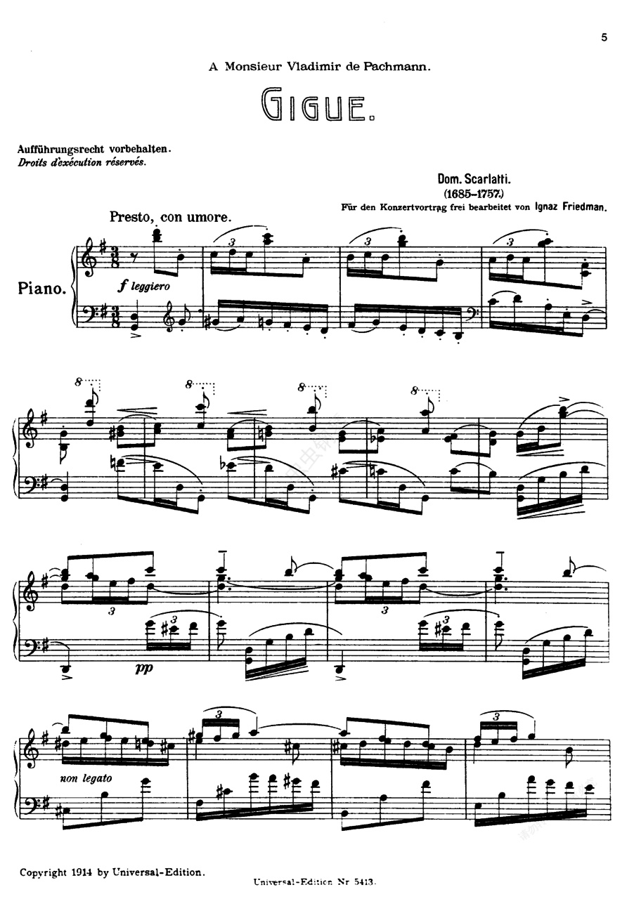钢琴谱:Friedman 改编曲集(Scarlatti-Friedman Gigue)