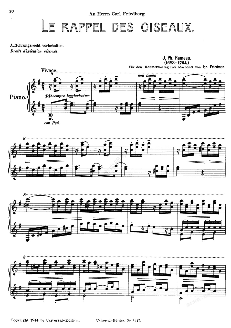 钢琴谱:Friedman 改编曲集(Rameau-Friedman Le Rappel des Oiseaux)