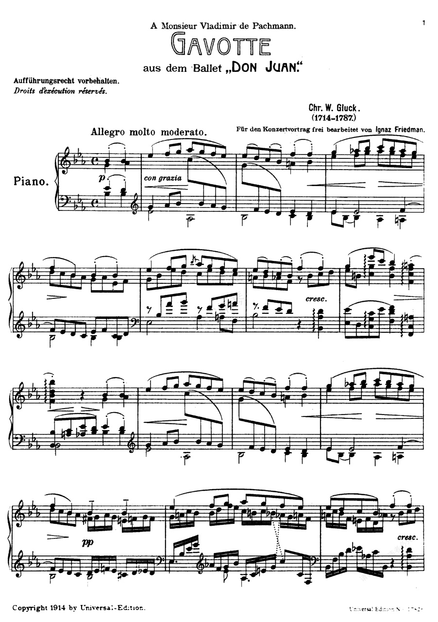 钢琴谱:Friedman 改编曲集(Gluck-Friedman Gavotte)