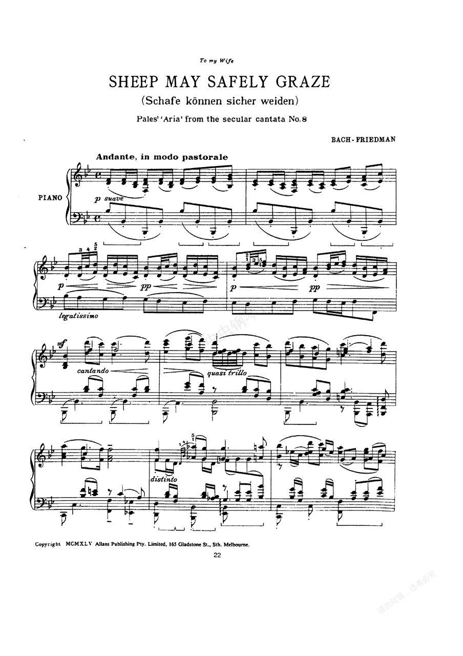 钢琴谱:Friedman 改编曲集(Bach-Friedman Sheep May Safely Graze)