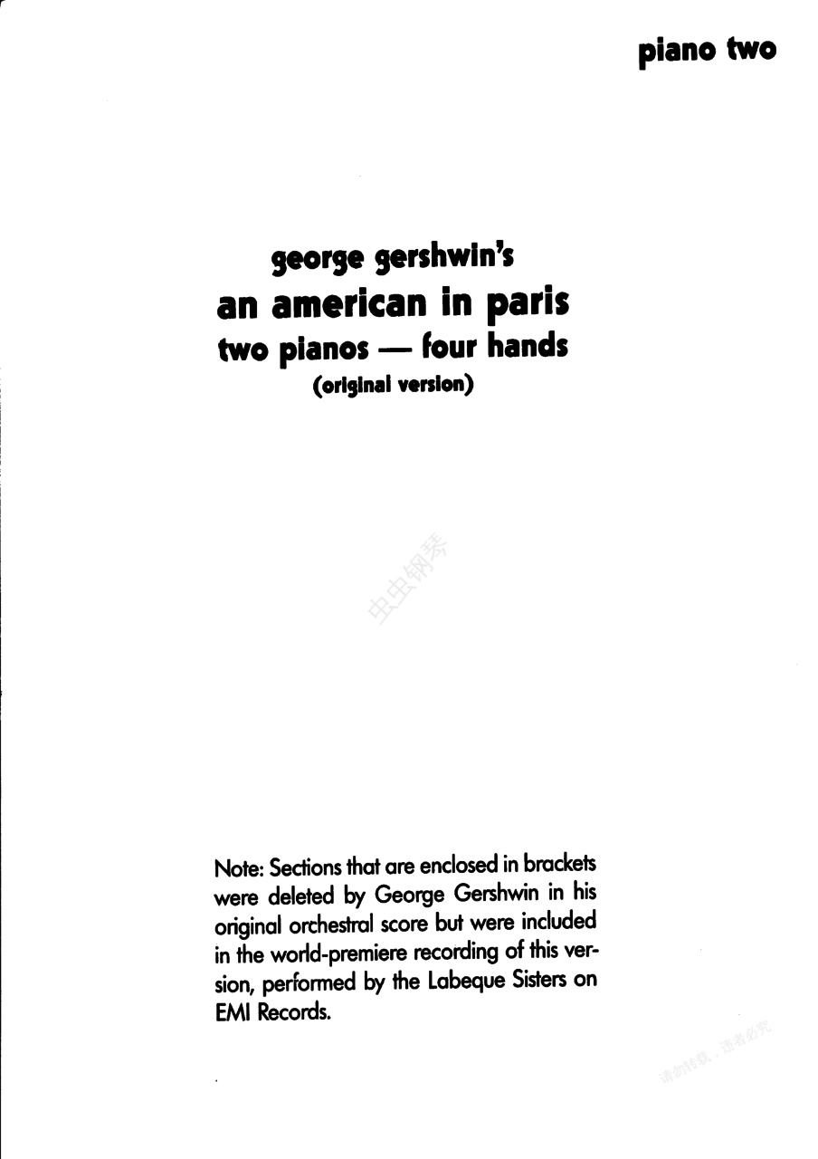 钢琴谱:音诗《一个美国人在巴黎》An American in Paris - 双钢琴版(Gershwin American in Paris (two pianos, piano 2))