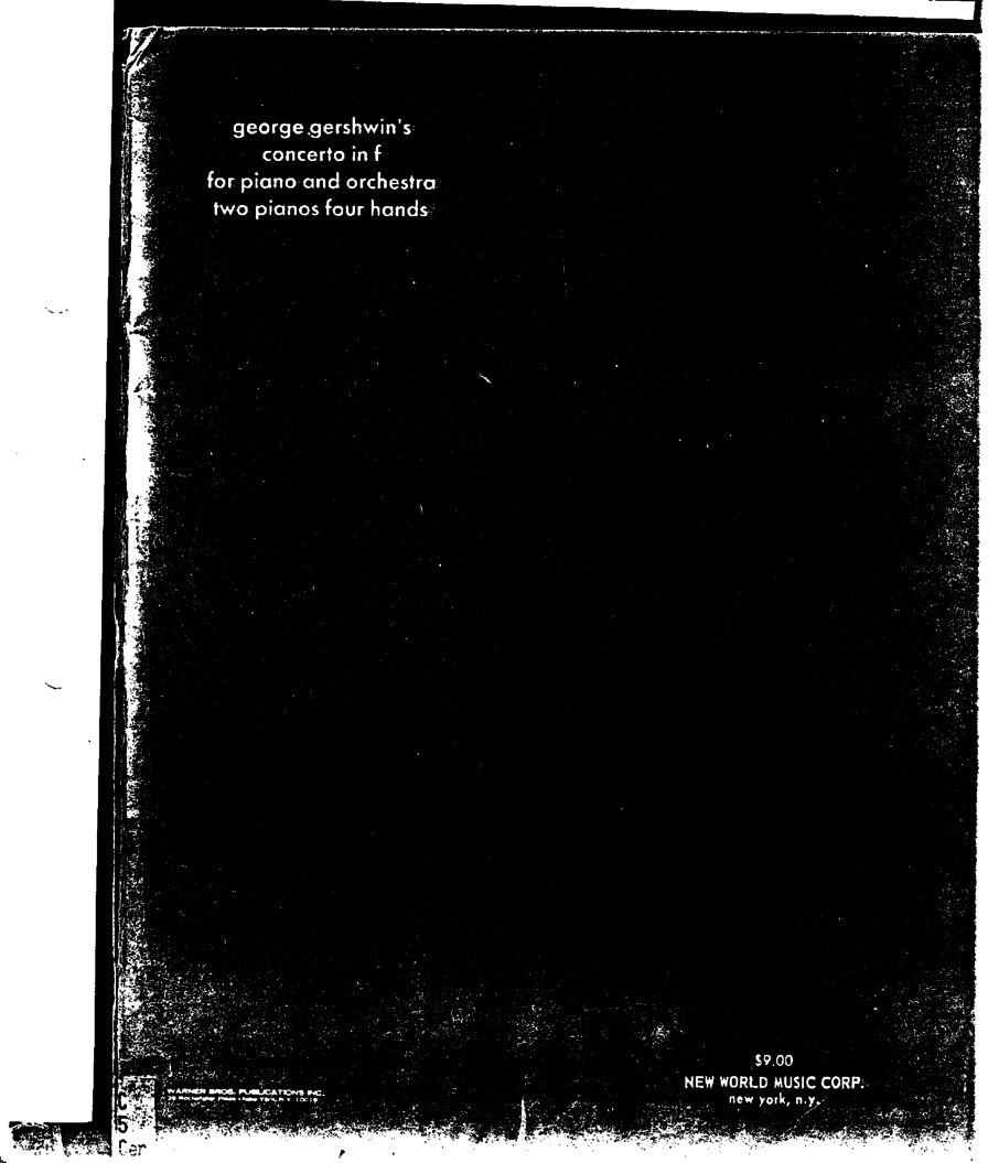 F大调钢琴协奏曲 Piano in F Major《蓝色狂想曲》的成功刺激了格什温创作“爵士协奏曲”的欲望。第二年的春天,他便开始构思他的《纽约协奏曲》,后来定名为《F大调钢琴协奏曲》Piano in F Major 。同年7月至9月间完成钢琴初稿。由于格什温对《蓝色狂想曲》最初由格罗菲配器一事十分遗憾,这次他决心自己来为这部作品配器。他曾这样说:“许多人认为我的狂想曲只是偶然的成功。好吧,首先我要出来向他们露一手,让他们知道这里还有着更丰富的蕴藏呢。我决心写一部'绝对'音乐作品。那首作品是从布鲁斯得来的印象,而这部协奏曲则同任何标题都没有关系。我正式这样把它写出来的。从这一实践中我写到了很多,尤其是在掌握乐器组合这一方面。”此乐曲在1925年11月10日完成配器,为了听一下效果,格什温租用了环球剧场,并请了一支60人的乐队。达姆罗什博士听了试奏后印象颇深。他证实了这是一部激动人心的、惊人的作品,后来他写道:“各式各样的作曲家曾经在爵士乐周围打转,就像是一只猫围着一盆热汤团团转,等着汤凉下来便可以享受一顿美餐而不至于烫伤舌头,因为他们的舌头至今还只习惯于古典派厨师手里滴下来的那些温和的饮料。爵士乐小姐以迷人的节奏为装饰,到处跳舞,遍及世界各地……但是,尽管她走遍天下,风靡全球,她却没有遇到过一位骑士能将她提升为音乐界可敬的一员的地位。看来,格什温实现了这样的奇迹,他大胆地给这位独立无羁的、时髦的年轻小姐穿上了协奏曲这件古典服装,同时又丝毫无损于她那迷人的个性。他就是那位王子,这王子拉着灰姑娘的手,当众宣布她是一位公主,从而使全世界大吃一惊……”。此曲于1925年12月3日首演,格什温弹钢琴,达姆罗什指挥纽约爱乐,取得了巨大的成功。许多人认为这是格什温最优秀的一部作品。英国指挥家科茨甚至将它列入了历来50部最优秀的作品之中,理由是这部作品表达了目前这个时代。全曲共分三个乐章。第一乐章,快板,F大调。引子是一个有定音鼓演奏的狂想曲风格的快速乐句。降A大调呈示部,钢琴以不谐和切分音弹出主部第一主题,并与乐队交互形成快速对答。主部第二主题为狐步舞节奏,通过变奏充分演绎出爵士乐风格。随后转为充满诗意的中板,与主部的爵士风格形成鲜明对比。展开部中的第二主题变化为很快的快板,而第一主题则在再现部中形成灿烂辉煌的情绪。第二乐章,慢板—流畅的行板,降D大调。圆号以慢板节奏安静地奏出引子,并发展成为行板,小号随后在宁静的气氛中以爵士乐的即兴方式吹出主题预示,钢琴以变奏形式弹出主题。第二主题是一段抒情的钢琴和长笛的应答,如梦如幻。第三乐章,激动的快板,f小调。第一主题是一个西部牛仔式的旋律,在主题的回旋中,各种插部穿插其间。第二主题更为活泼一些,其中穿插了各乐章的主题素材,其间又穿插有第一主题的素材。最后渐进到急板,随着定音鼓的推动,最后结束在钢琴和乐队的强奏F大调主和弦。