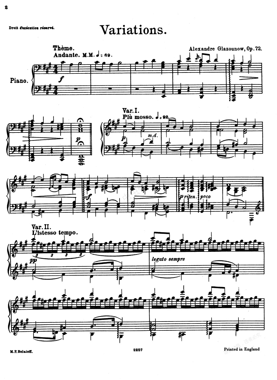 钢琴谱:升f小调主题与变奏 Theme et Variations in f Flat Mimor Op.72