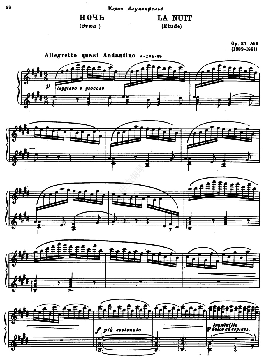 钢琴谱:练习曲 Etude (La Nuit) op31