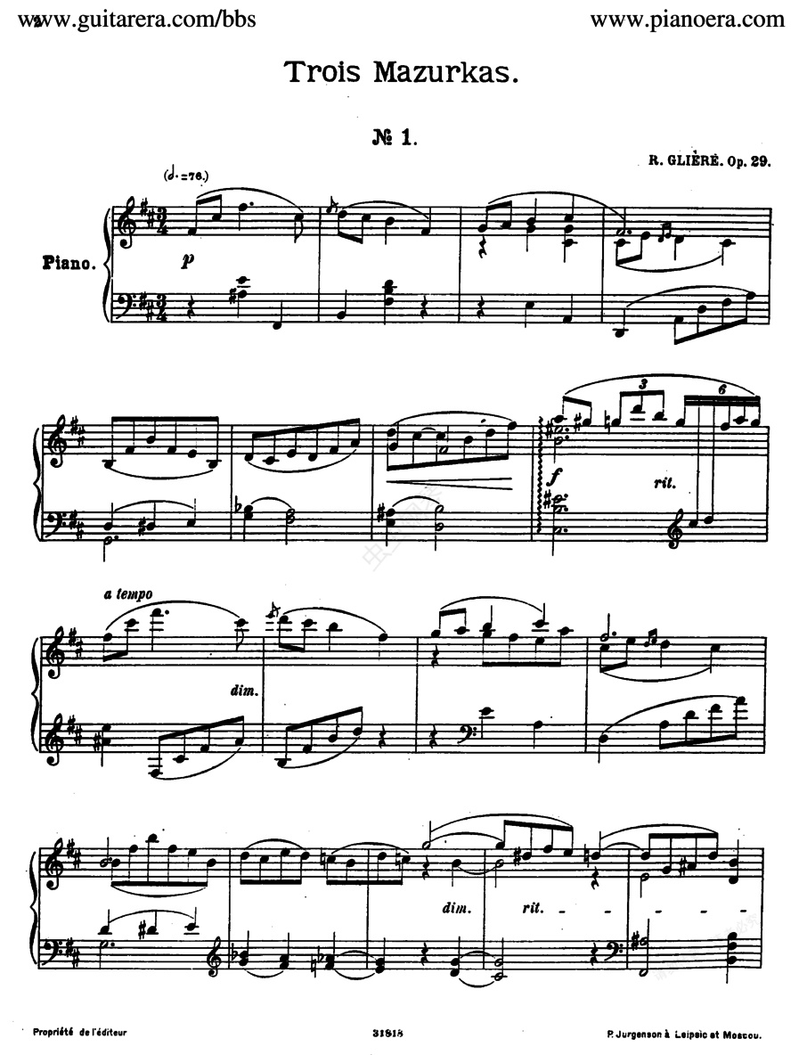钢琴谱:3首玛祖卡舞曲 3 Mazurkas Op.29