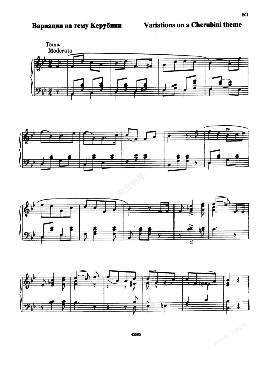 钢琴谱:凯鲁比尼主题变奏曲 Variations on a Theme from Cherubini