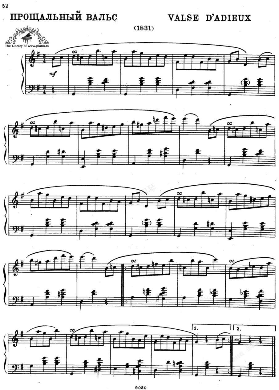 钢琴谱:离别圆舞曲 Valse d'Adieux