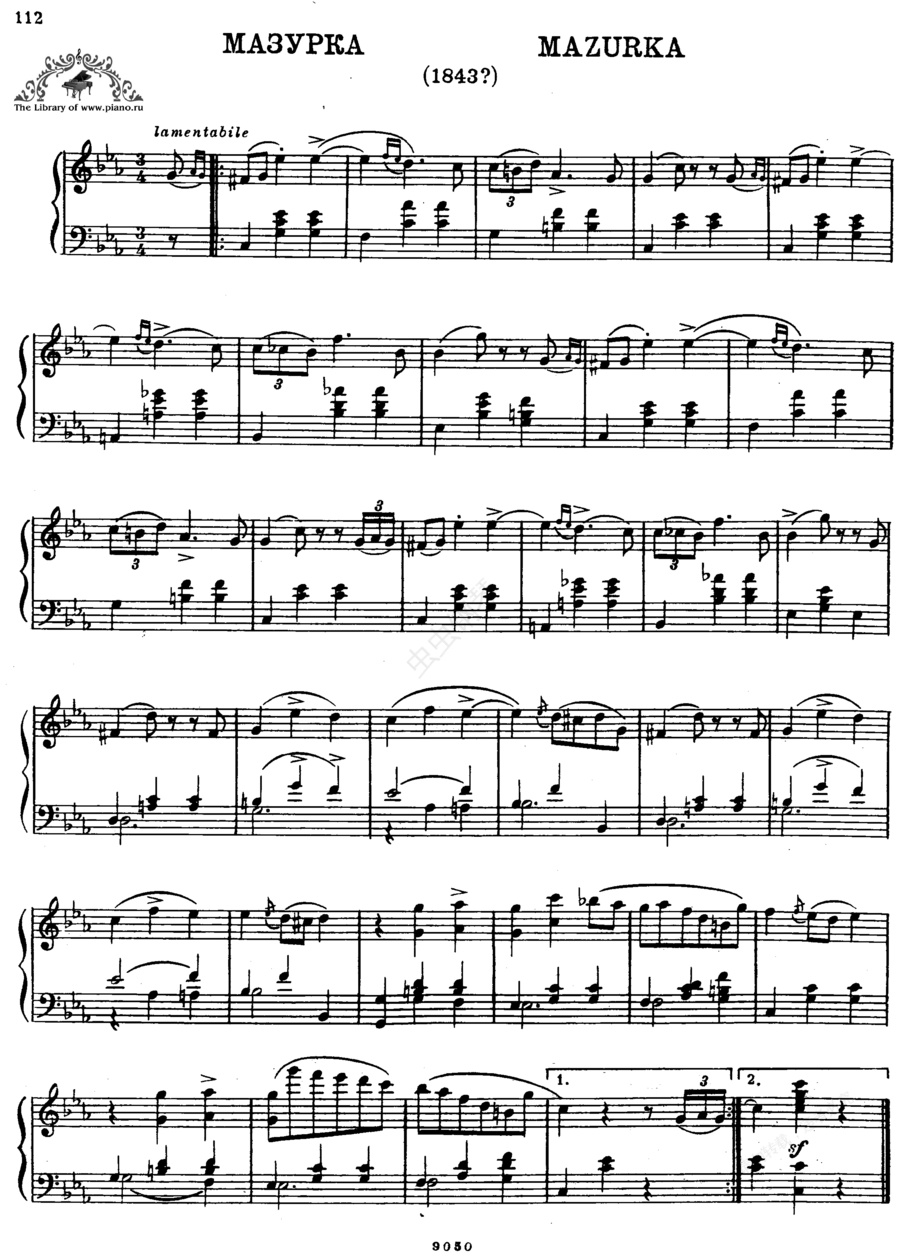 钢琴谱:c小调玛祖卡 Mazurka in c Minor