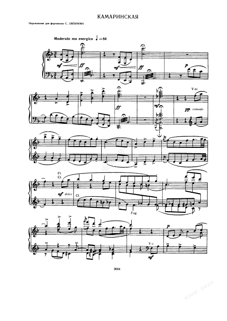 交响幻想曲《卡玛林斯卡亚》Kamarinskaja - 钢琴独奏版