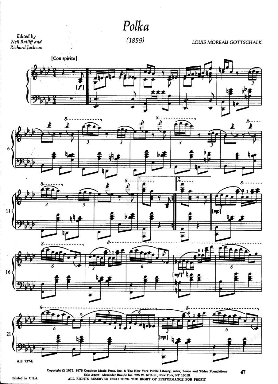 钢琴谱:波尔卡两首 Polka(Gottschalk_Polka-in-A-flat)