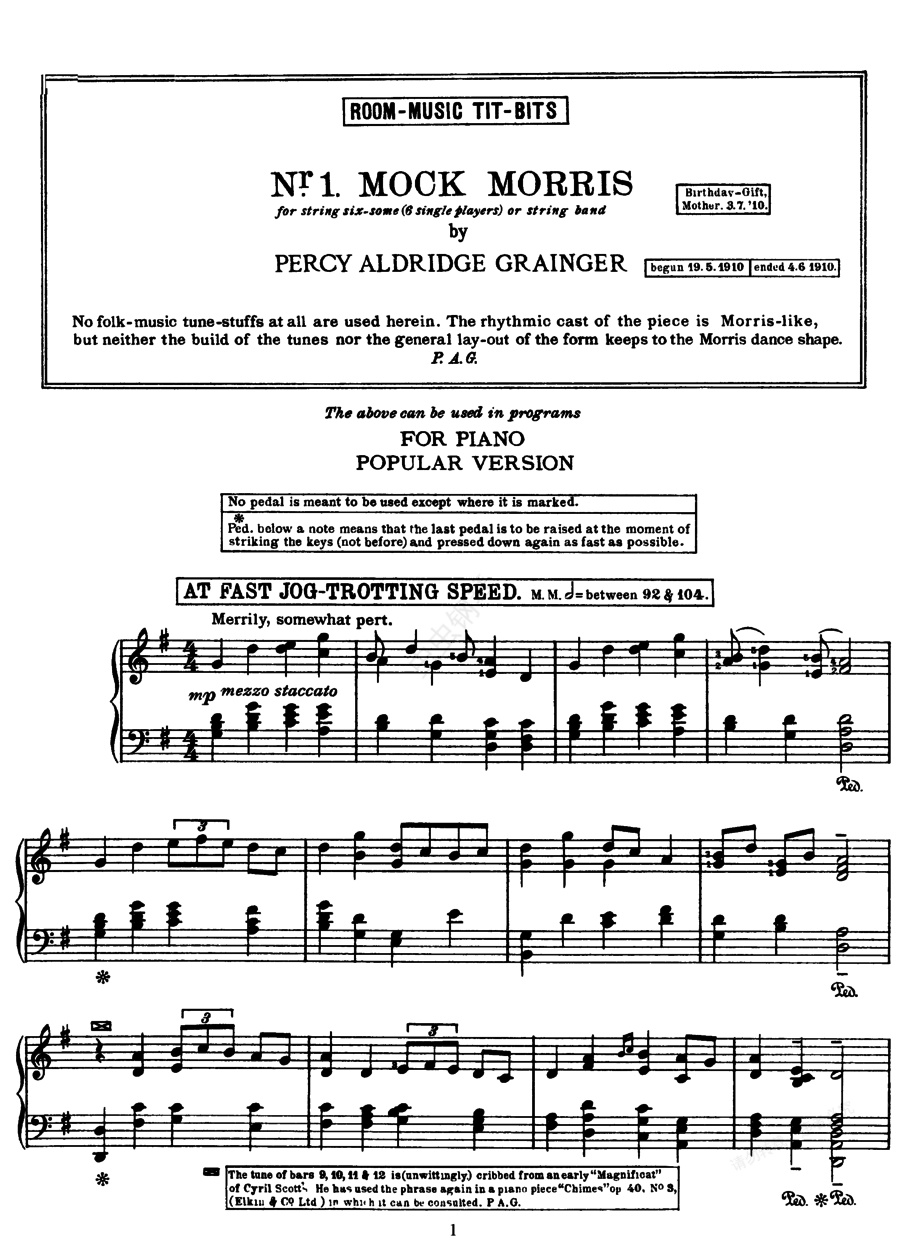 钢琴谱:Mock Morris(Mock Morris (Version 2))