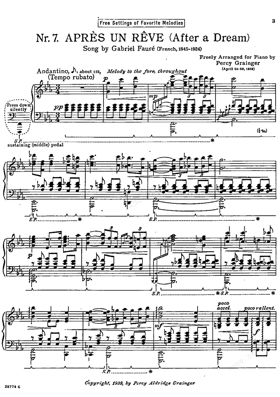 钢琴谱:改编福雷作品Faure-Grainger(Faure-Grainger Apres un reve)