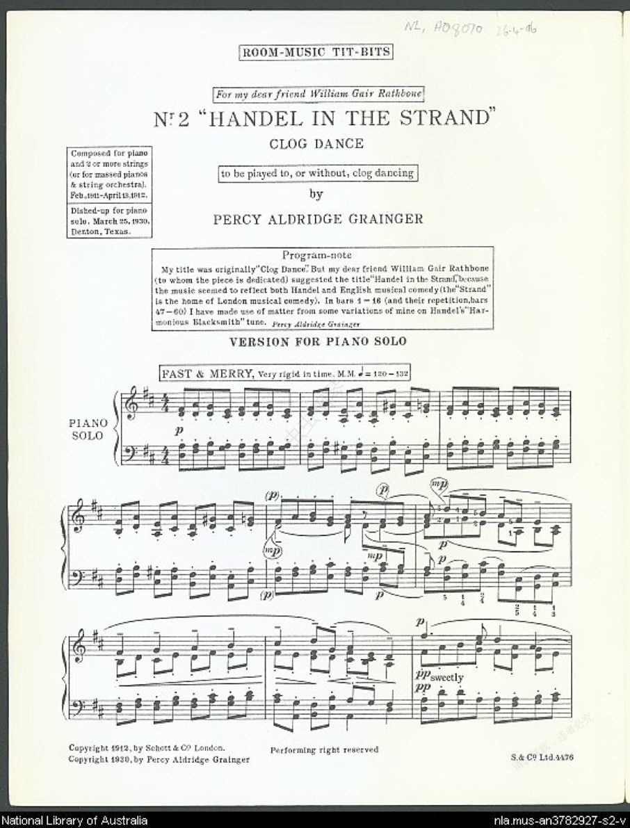 钢琴谱:改编亨德尔Handel-Grainger(Handel-Grainger In the Strand)