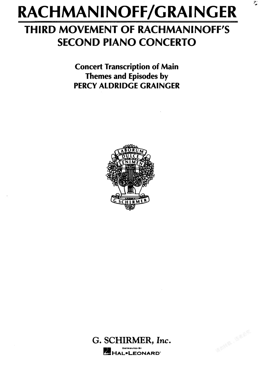 钢琴谱:改编拉赫玛尼诺夫作品Rachmaninoff-Grainger