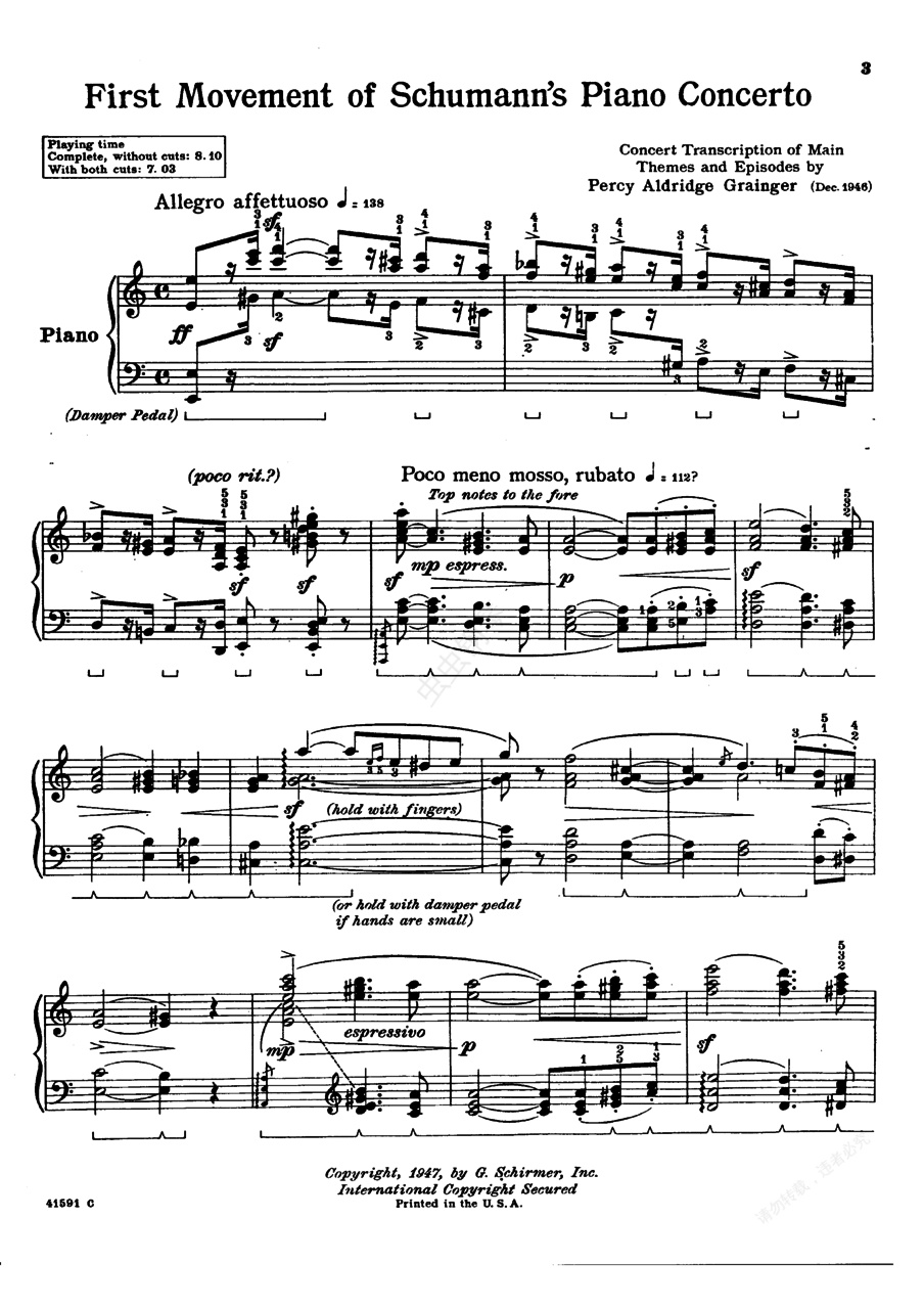 钢琴谱:改编舒曼作品Schumann-Grainger