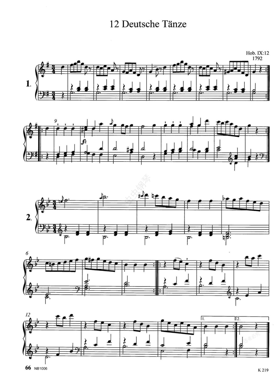 钢琴谱:十二首德国舞曲Haydn - 12 German Dances