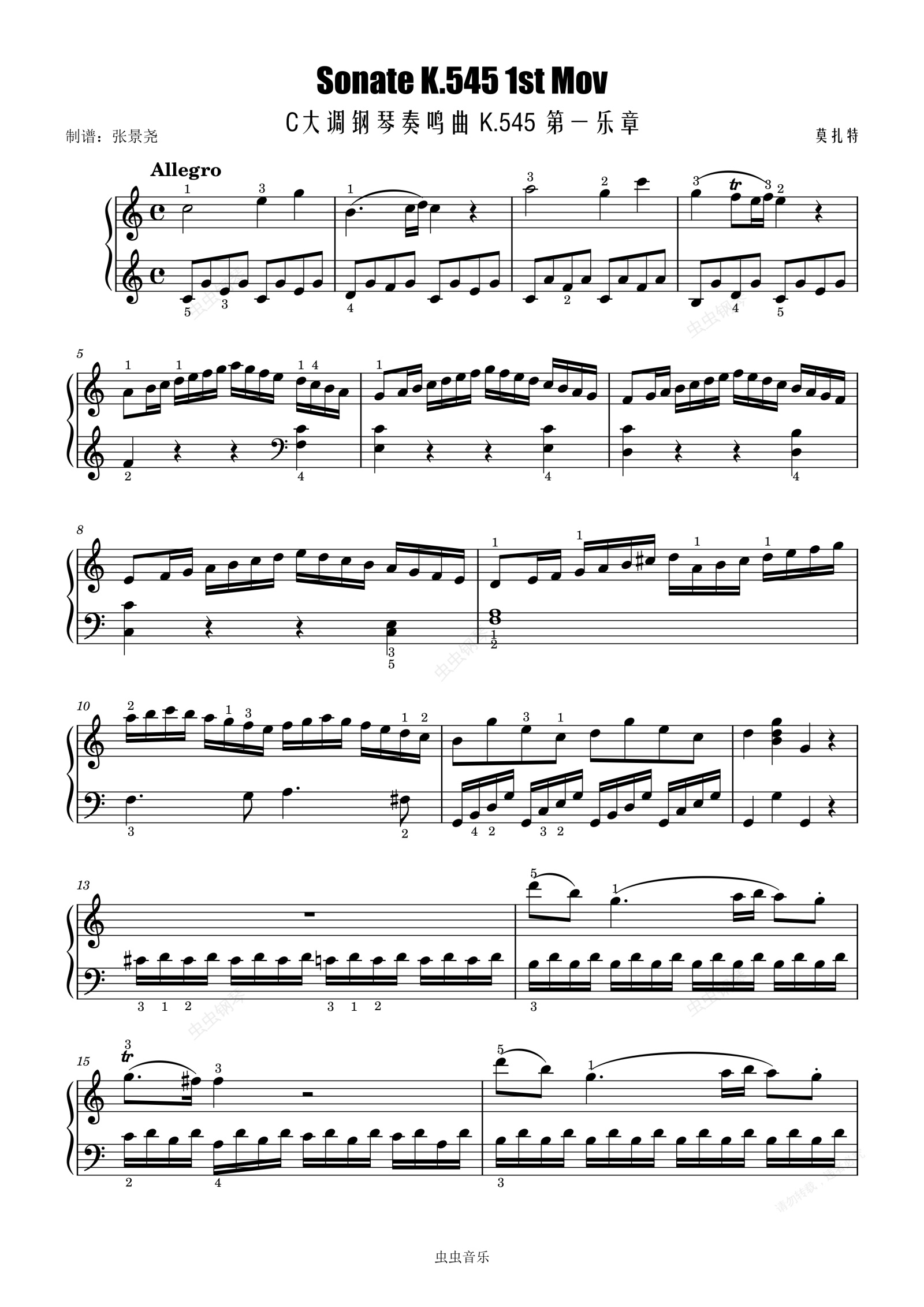 钢琴谱:C大调钢琴奏鸣曲 K.545 第一乐章-莫扎特-Asmort制谱