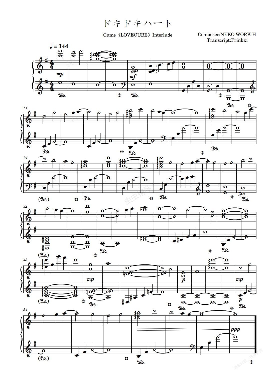 钢琴谱:【扒谱/爱立方】ドキドキハート