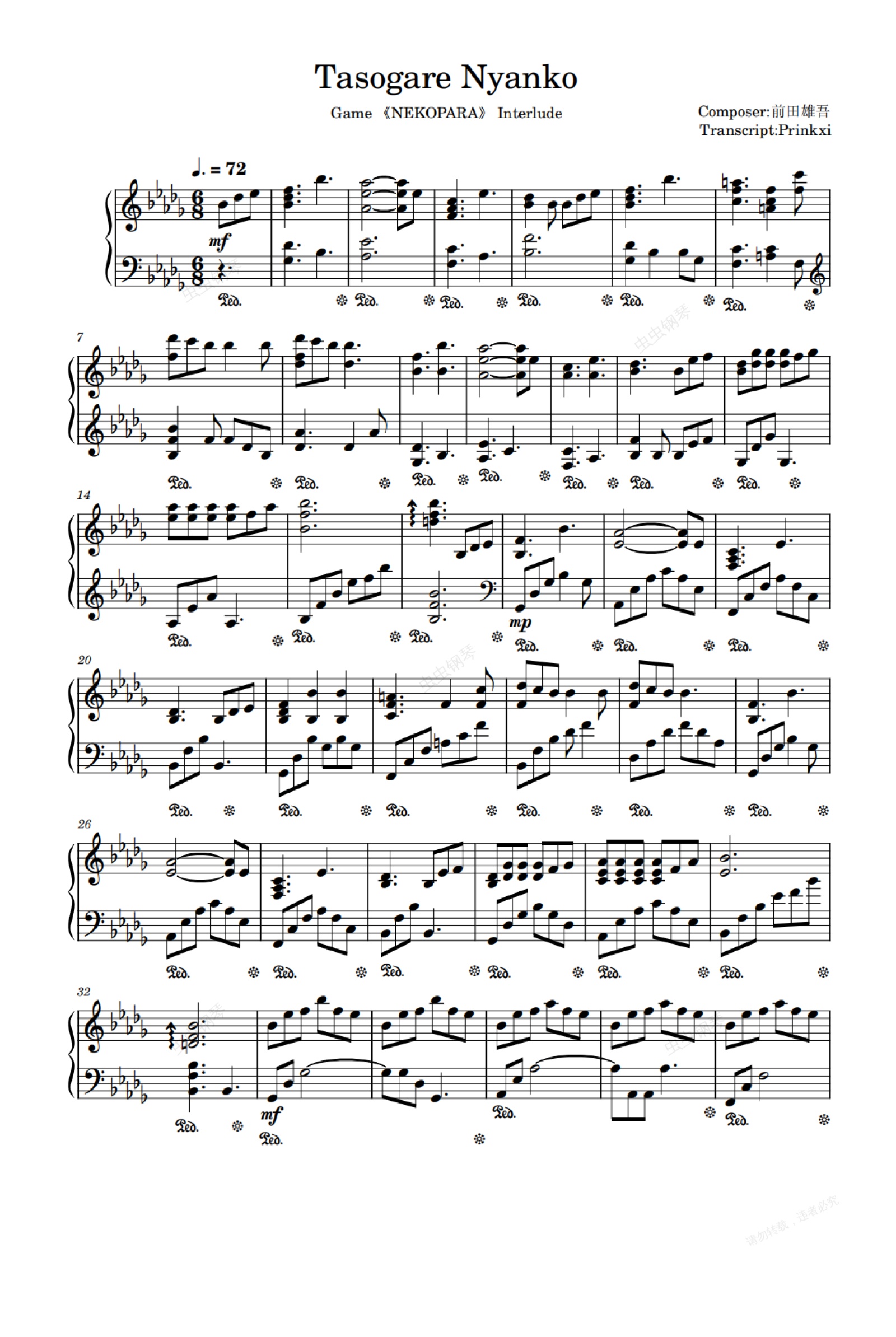 钢琴谱:【扒谱/NEKOPARA】Tasogare Nyanko