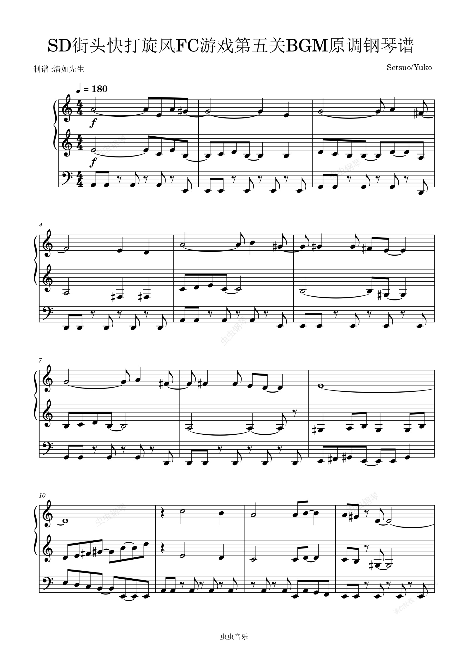 钢琴谱:SD街头快打旋风FC游戏第五关BGM原调钢琴谱