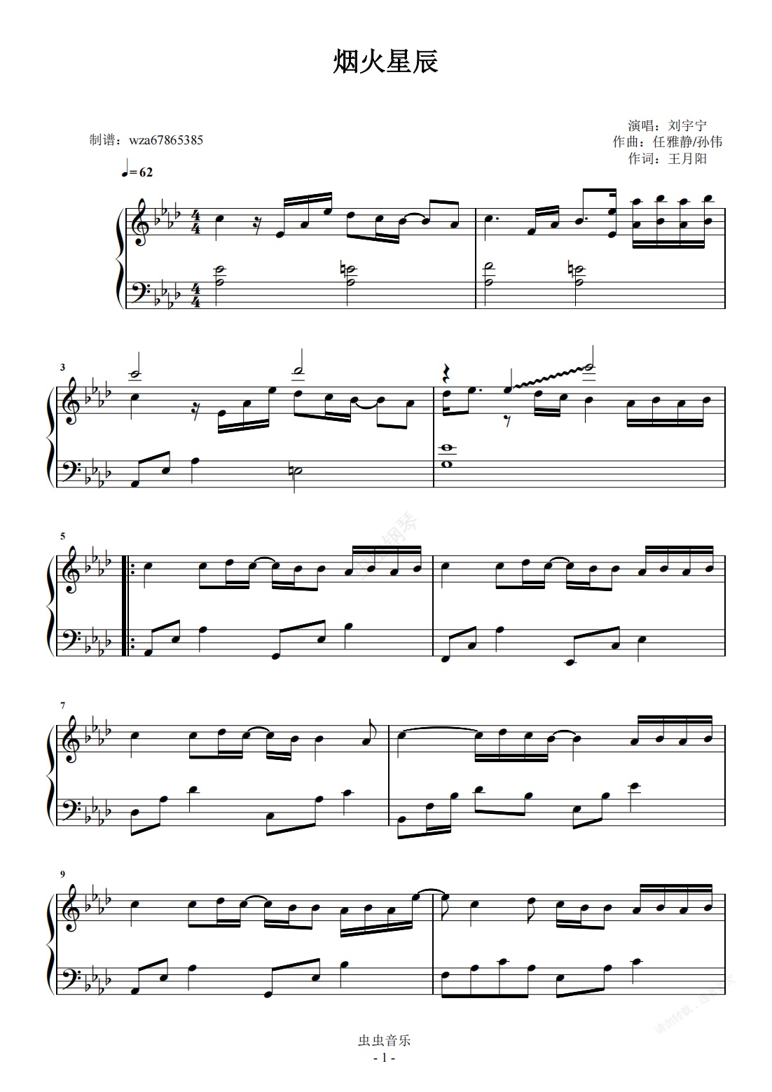 钢琴谱:烟火星辰