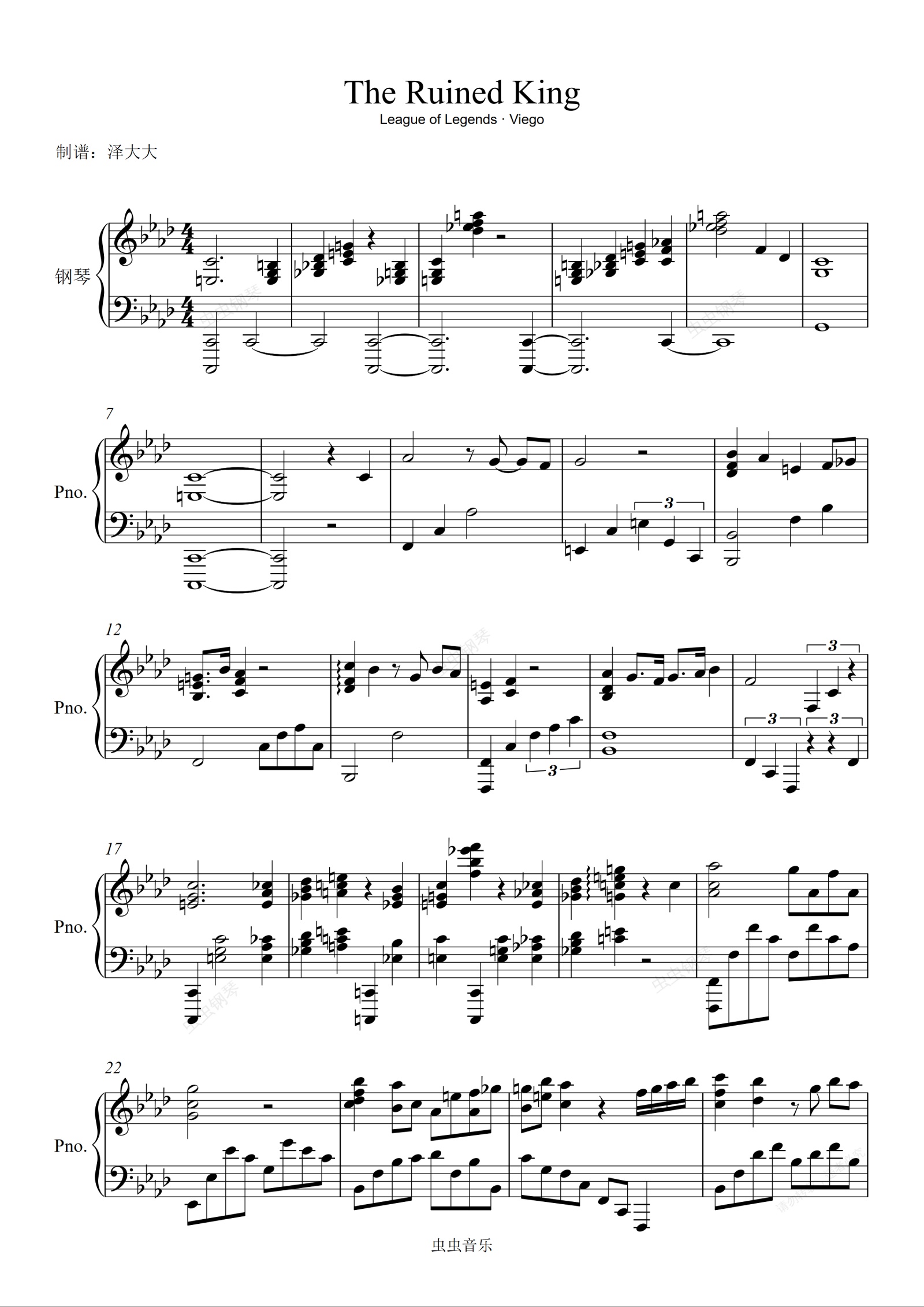 钢琴谱:【免费】英雄联盟破败之王弗耶戈【The Ruined King】泽大大