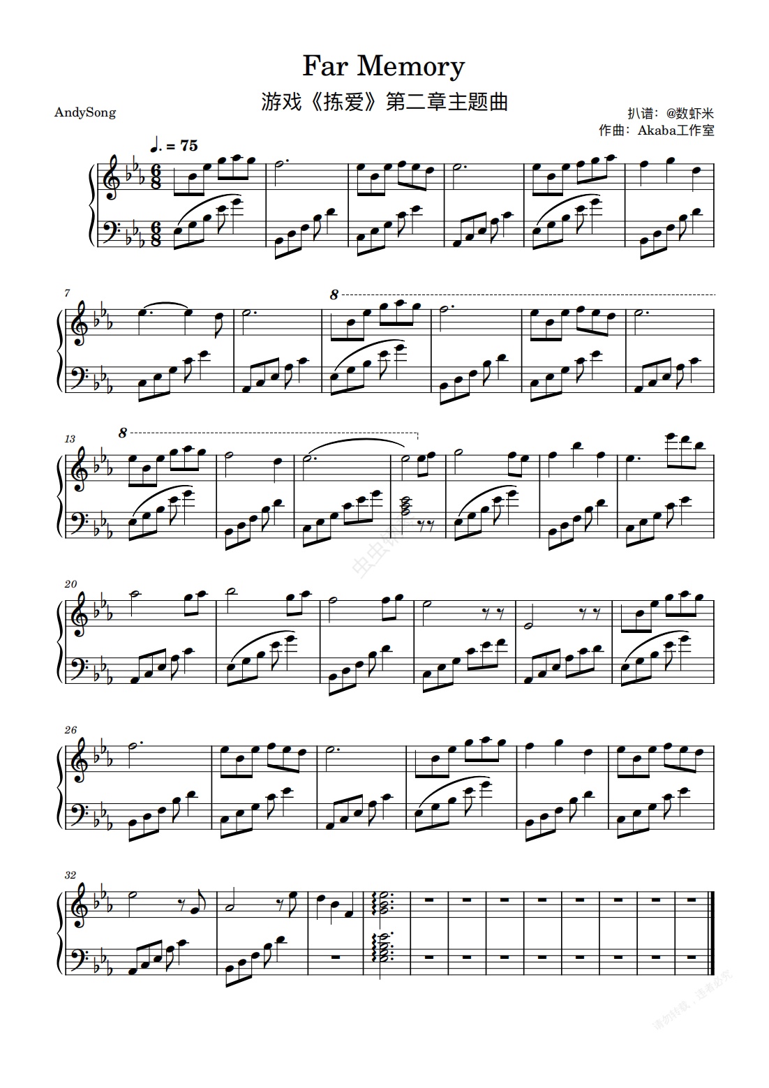 钢琴谱:Far Memory(游戏《拣爱》第二章主题曲