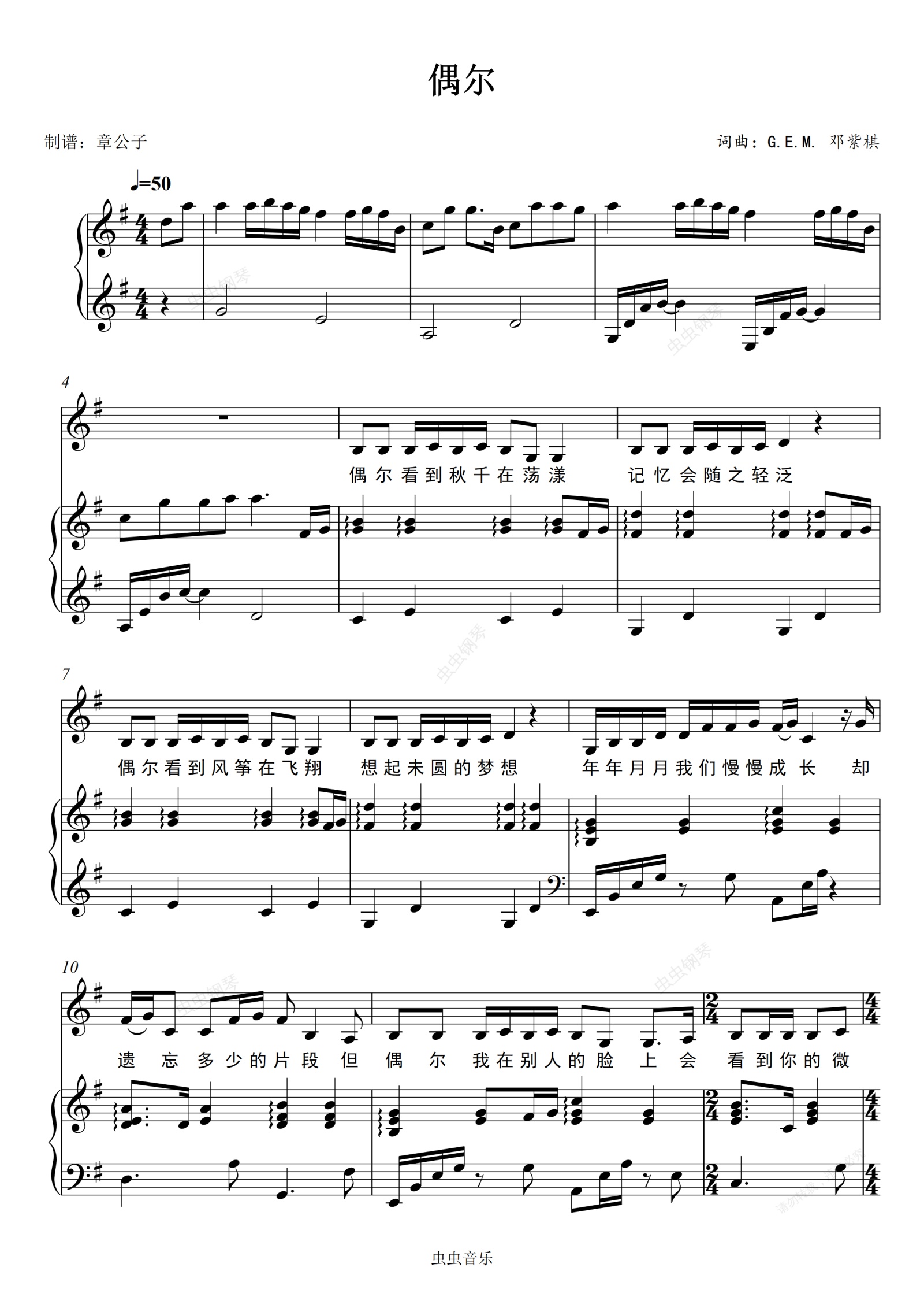 钢琴谱:《偶尔》(邓紫棋)钢琴弹唱(伴奏)谱