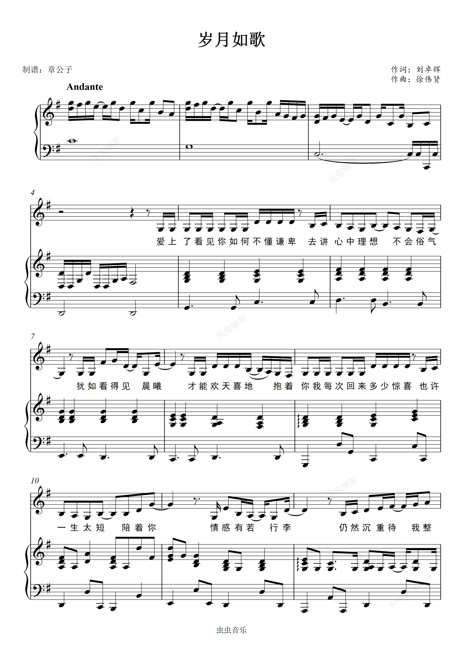 钢琴谱:《岁月如歌》(陈奕迅) 女声G调版弹唱(伴奏)谱