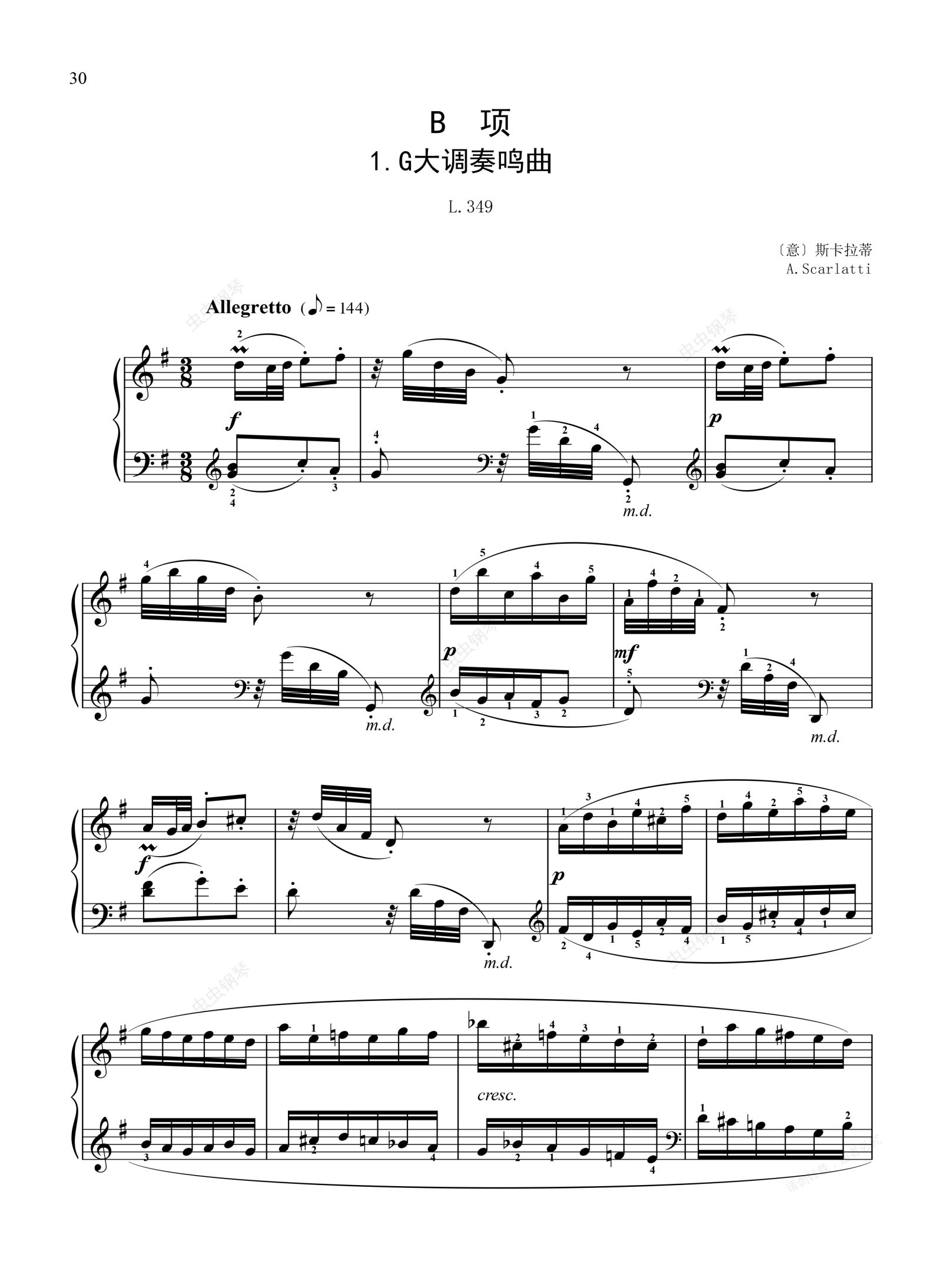 钢琴谱:第九级B-1.G大调奏鸣曲