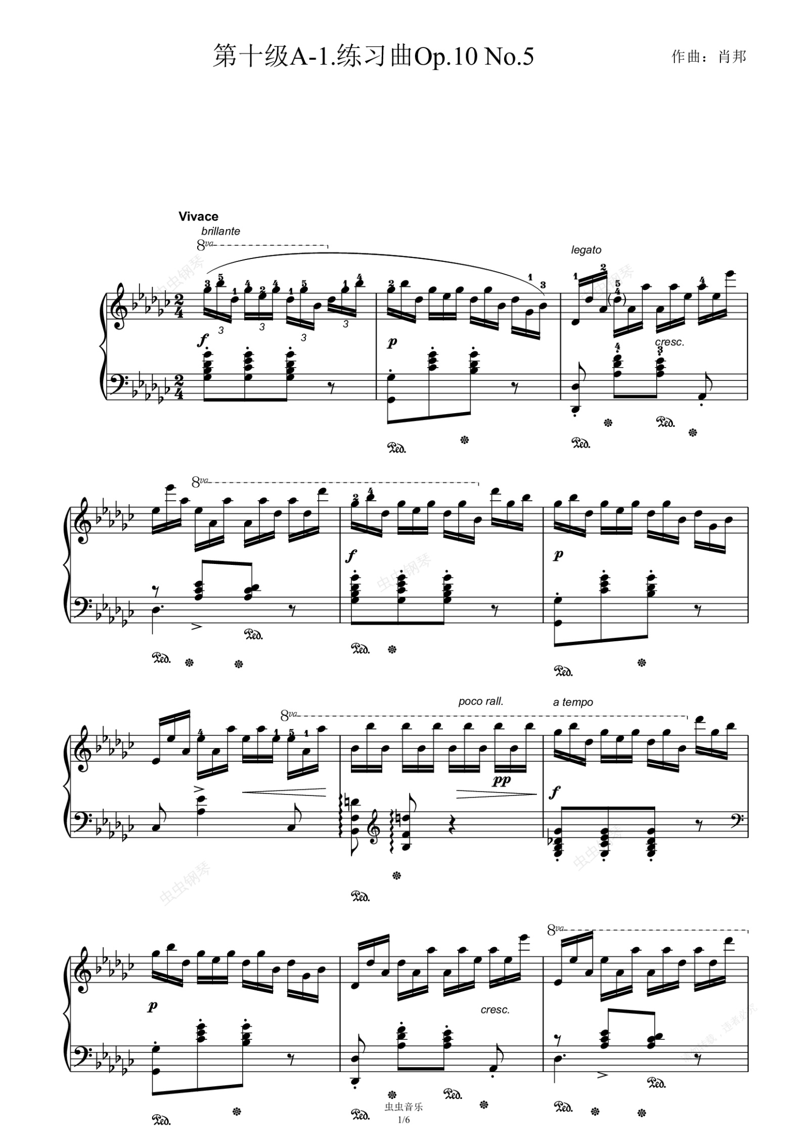 钢琴谱:第十级A-1.练习曲Op.10 No.5