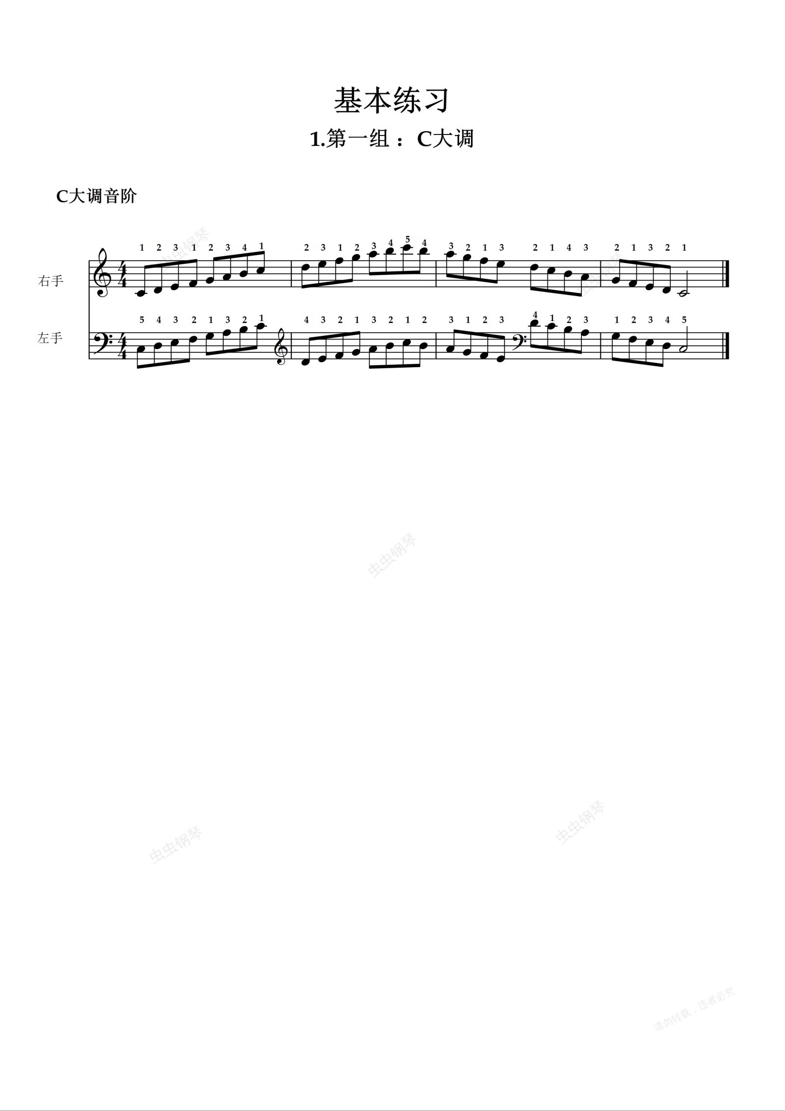 钢琴谱:第一级基本练习C大调音阶
