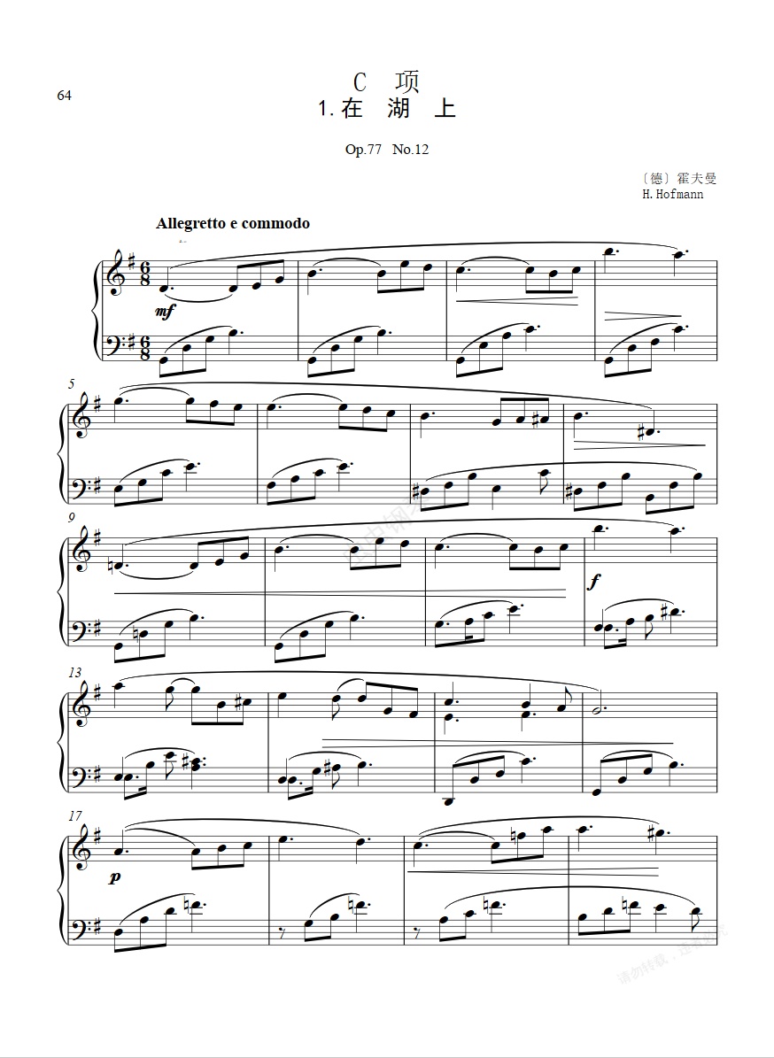 钢琴谱:第四级C-1.在湖上