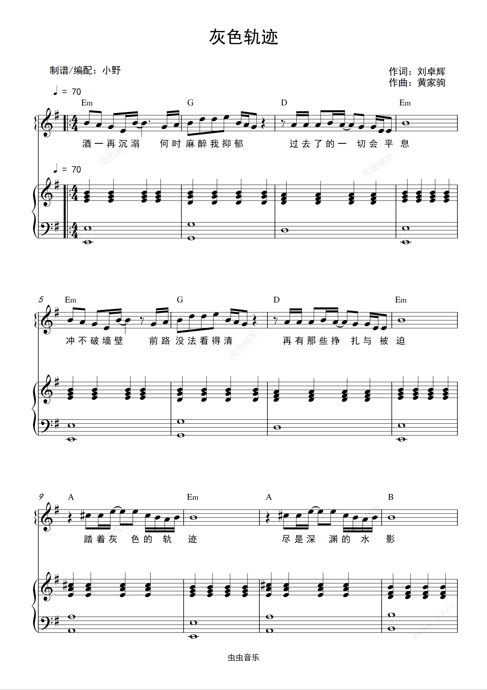 钢琴谱:灰色轨迹(和弦弹唱版)