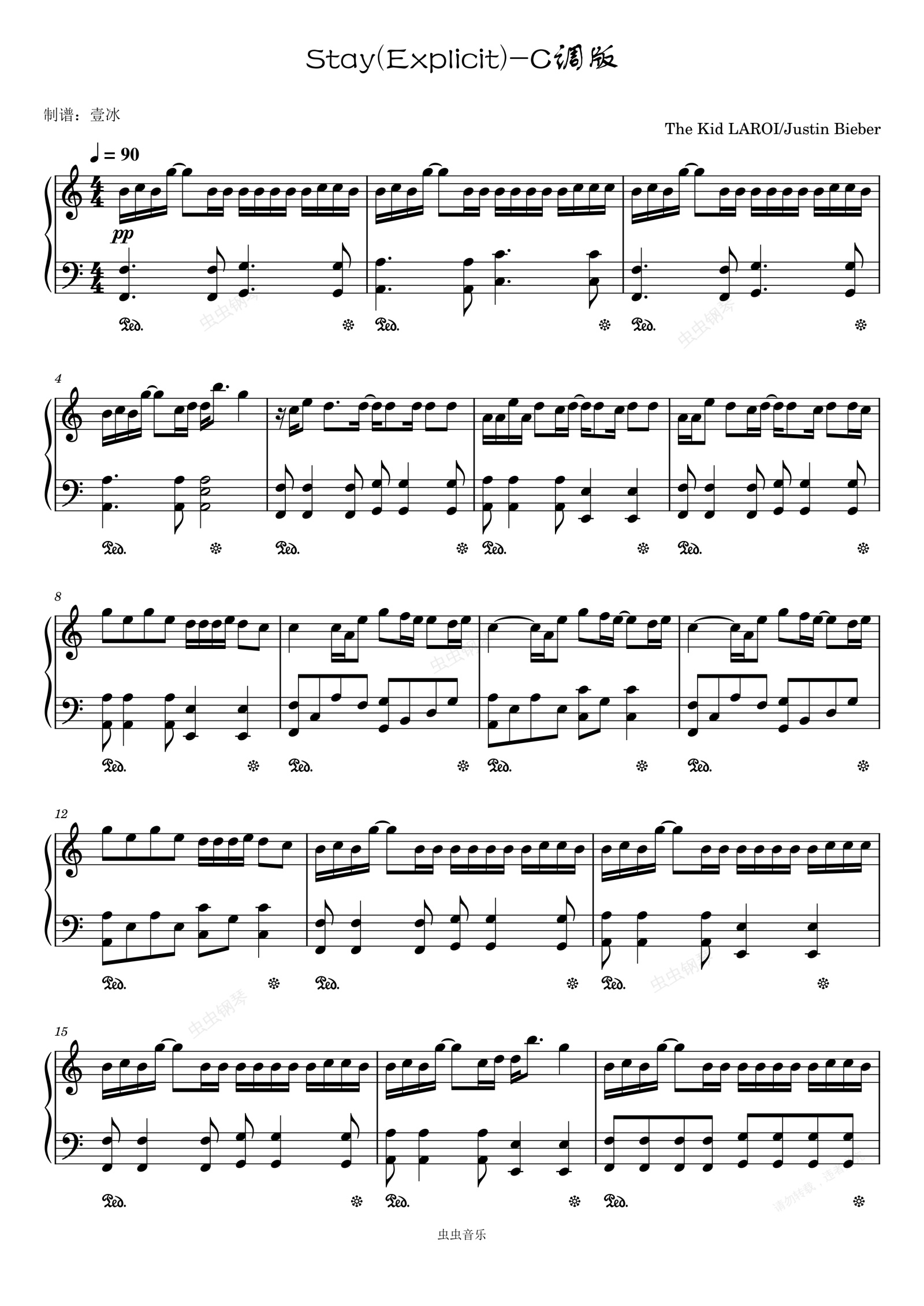 钢琴谱:Stay(Explicit)//The Kid LAROI/Justin Bieber-C调版