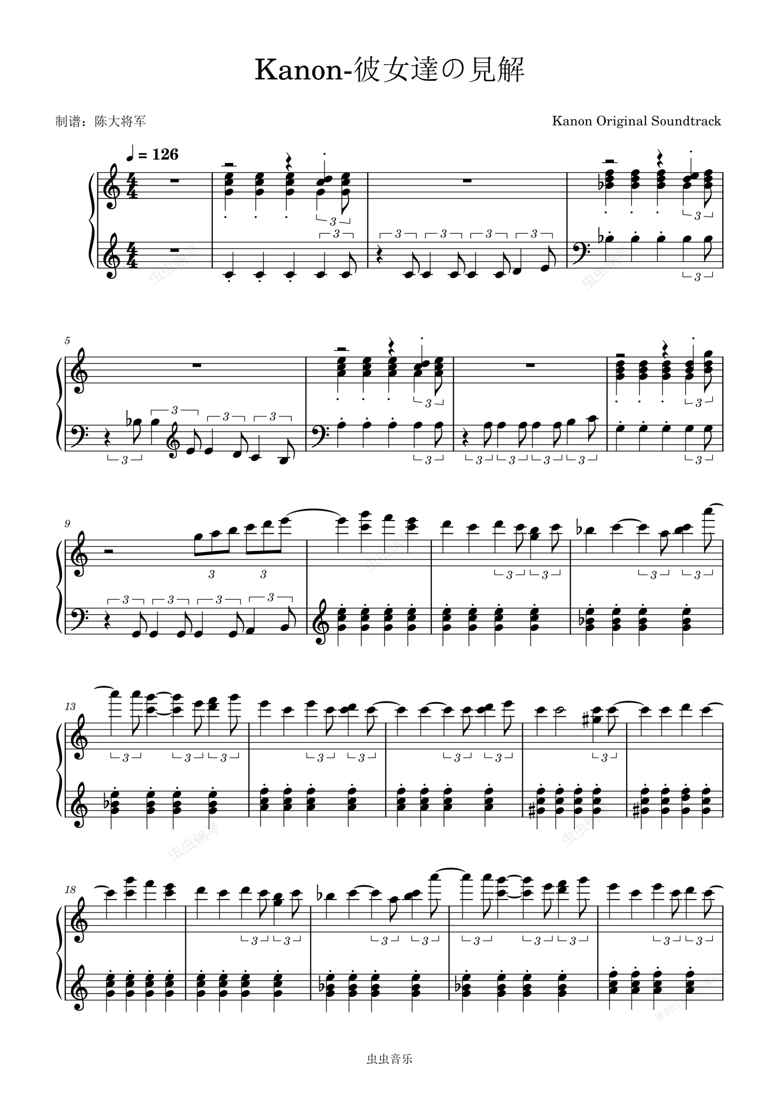 钢琴谱:Kanon-彼女達の見解