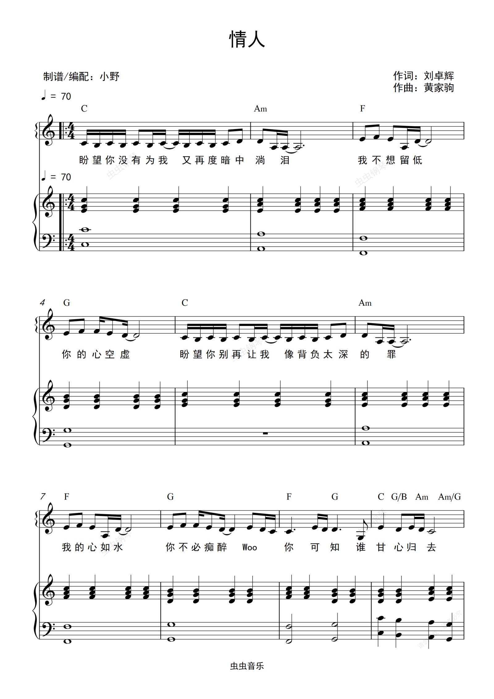 钢琴谱:情人(和弦弹唱版)