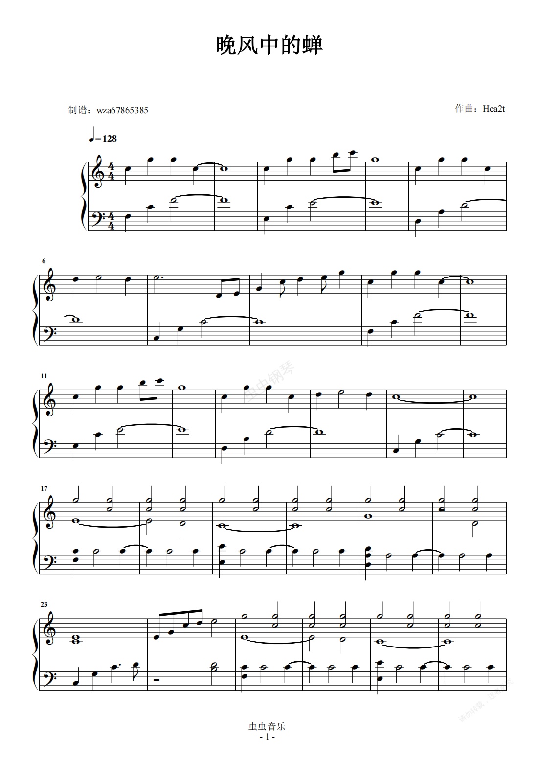 钢琴谱:晚风中的蝉