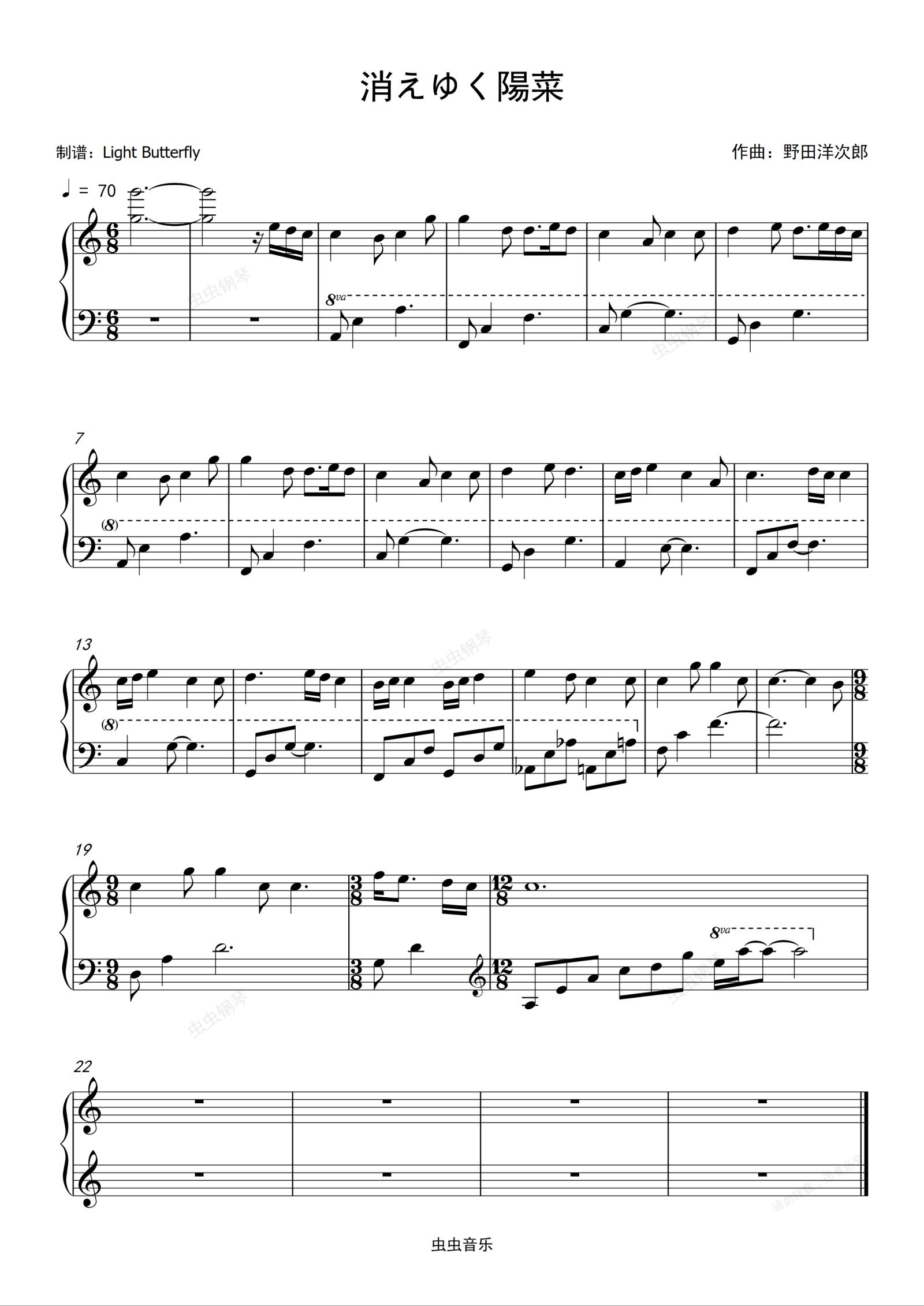 钢琴谱:【天气之子】消えゆく陽菜 (阳菜之消失)