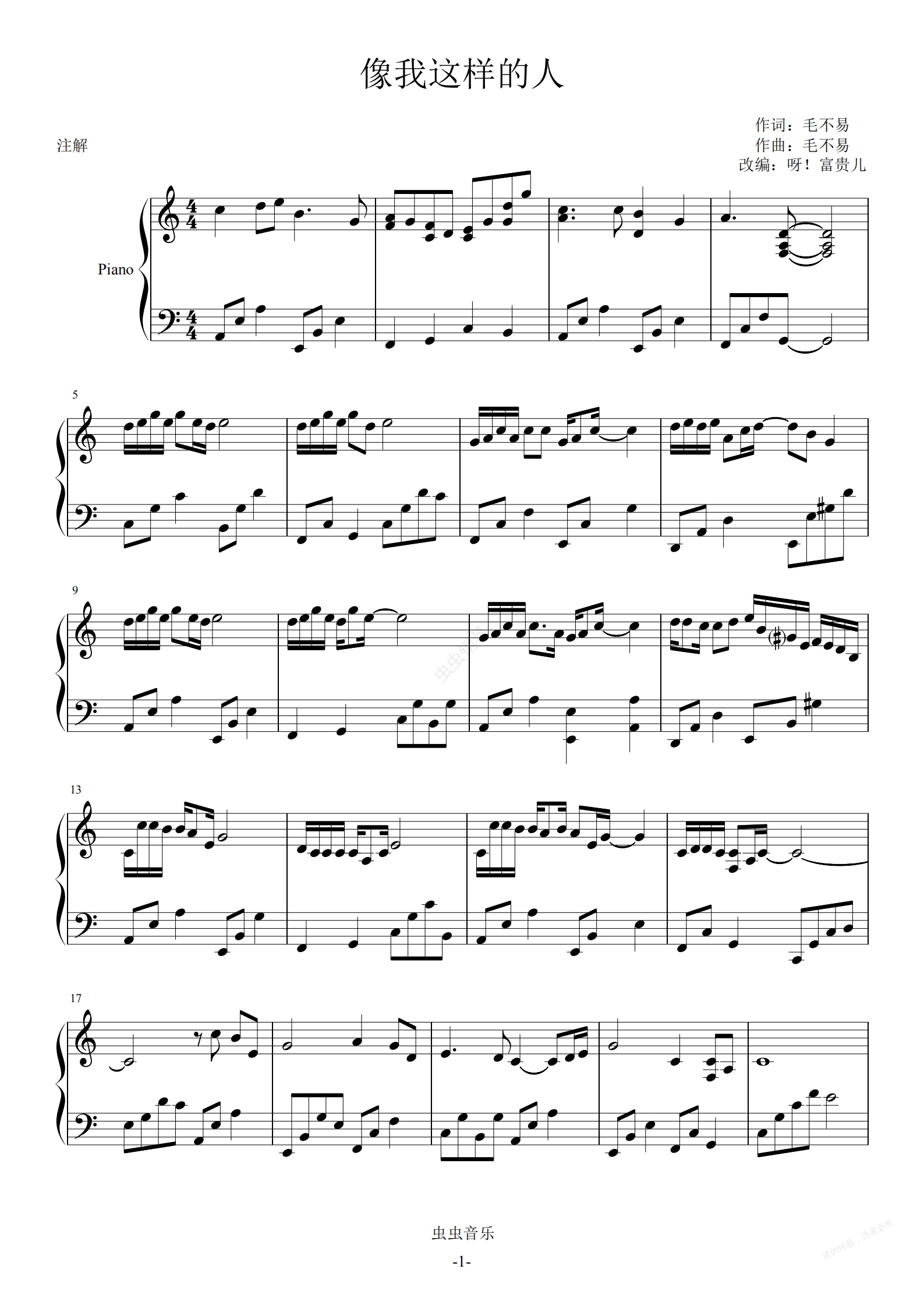 钢琴谱:毛不易-像我这样的人-完美C调版